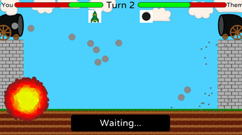 Shoot projectiles at the enemy wall before the enemy destroys yours! Choose from some amount of abilities to attack or defend.